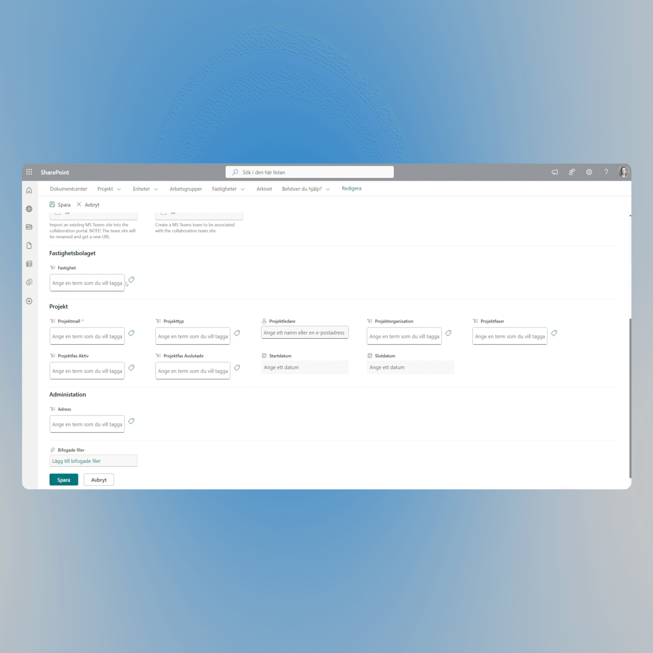 Alla filer som läggs till i SharePoint eller Teams får via XCollab grundläggande metadatataggning automatiskt. Det kan vara per projektledare, per projekttyp eller det som passar er verksamhet. Slut på svåröverblickbara mappsystem!